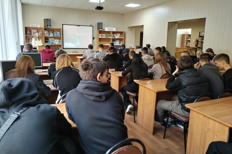 Студенты вместе со специалистом молодежного центра разобрали понятия «фашизм», «нацизм» и «национализм». Студенты узнали, где зародился фашизм, какие формы национализма бывают. Далее разобрали, что такое современный национализм, узнали историю его происхождения.