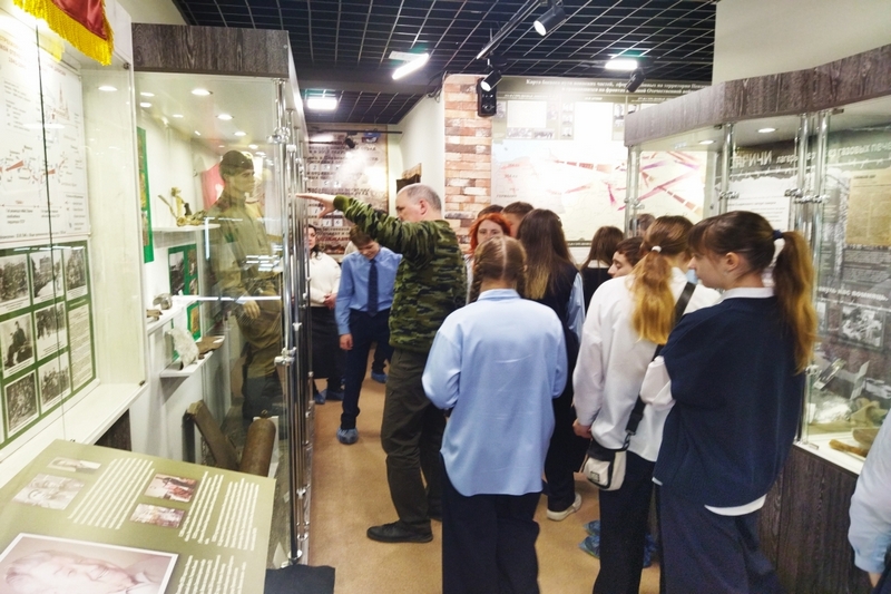 Экспозиция, посвященная находкам поисковых отрядов, вызвала особый интерес у посетителей. Учащимся была предоставлена детализированная информация о местах и обстоятельствах обнаружения экспонатов, а также разъяснены функции и значимость деятельности поисковых отрядов.